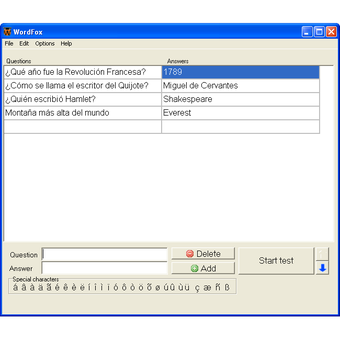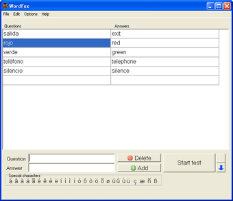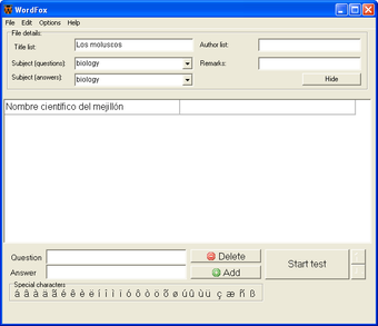 Hay dos columnas, una para las preguntas y otra para las respuestas. Podrás escribir preguntas completas o palabras sueltas (algo útil, por ejemplo, para estudiar vocabulario en otros idiomas). Otra forma de crear las listas es importándolas desde archivos externos. WordFox es compatible, entre otros, con .xml, kvtml o.t2k.